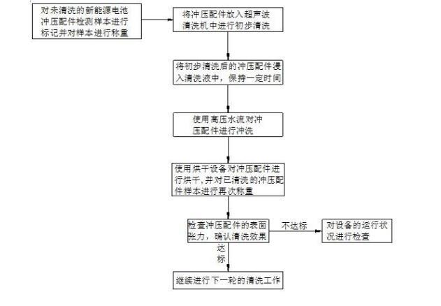 此沖壓配件的表面張力改善方法,就是通過(guò)將同一生產(chǎn)批次的沖壓配件放入超聲波清洗機(jī)中,超聲波清洗機(jī)產(chǎn)生的超聲波的高頻振動(dòng)能夠產(chǎn)生微小的氣泡,這些氣泡在液體中爆裂時(shí)會(huì)產(chǎn)生沖擊力,對(duì)沖壓配件進(jìn)行初步清洗。然后,將經(jīng)過(guò)初步清洗的沖壓配件放入事先配置好的碳?xì)淝逑匆褐校M(jìn)一步去除沖壓配件表面的氧化物和殘留物。再將經(jīng)過(guò)清洗液清潔處理過(guò)的沖壓配件取出,并使用高壓水流對(duì)清潔后的沖壓配件進(jìn)行沖洗,去除表面上的頑固污漬和顆粒,確保沖壓配件上的清洗液和殘留物被徹底清除。通過(guò)多重的清洗流程,有效提升新能源電池沖壓配件表面的清潔度,能夠達(dá)到理想的清洗效果,有效改善新能源電池沖壓配件的表面張力。