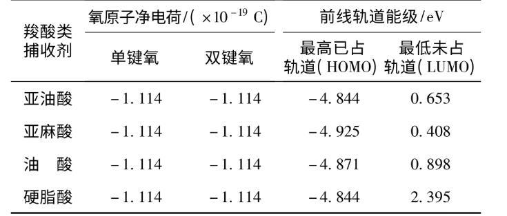 表2不同飽和度的羧酸的氧原子凈電荷及軌道能級(jí)