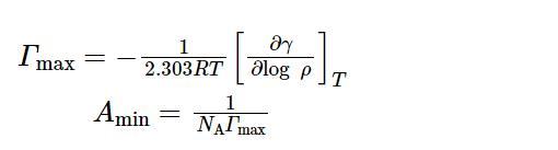通過鉑環(huán)法在室溫下進行表面張力測定,參考GB/T 5549-2010。繪制出表面張力-濃度對數(γ-lg c)曲線。使用公式(1)和(2)對飽和吸附量(Гmax)和單個分子占據最小表面積(Amin)進行計算。