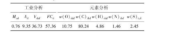 試驗采用山東能源新礦集團內蒙古能源中心選煤廠浮選精煤,經充分混合晾干后,密封保存待用。煤質分析見表1。由表1可知,樣品灰分較低,僅為9.35%。元素分析中氧含量為10.75%,主要來自煤中的無機礦物質和煤表面的一些含氧基團,煤中的無機礦物質和含氧基團與水能夠形成較強的氫鍵作用,使煤樣顯現出親水性,且水分不易排出。