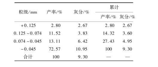表2浮選精煤樣品粒度組成