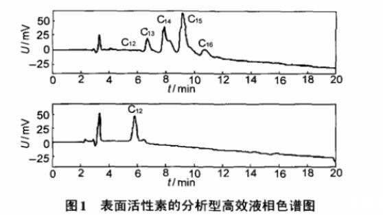 目前,對表面活性素溶液性質(zhì)的研究已有一些報道,但是基于分離純化技術(shù)的限制,大多數(shù)研究都是針對表面活性素同系物及其類似物的混合體系。這樣得到的結(jié)果難以準確地表征表面活性素膠束化過程以及表面活性素溶液體系的各個參數(shù),而且各個研究結(jié)果之間差異較大,結(jié)果不穩(wěn)定。本文由一株枯草芽孢桿菌HSO121出發(fā),發(fā)酵培養(yǎng)及分離純化得到了5種主要表面活性素,通過表面張力、界面張力、熒光法、動態(tài)光散射(DLS)和冷凍刻蝕電鏡(FF-TEM)對不同結(jié)構(gòu)的表面活性素溶液膠束化行為比較,得到表面活性素結(jié)構(gòu)差異對其溶液性質(zhì)和膠束化行為的影響規(guī)律。