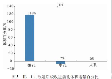 用參數(shù)校正后的方程處理數(shù)據(jù)發(fā)現(xiàn)樣品微孔孔體積占比增加,較原始方程處理得到的結(jié)果增加了118%;而中孔孔體積占比減小,較原始方程處理得到的結(jié)果減小了7%;大孔孔體積占比不變。用改進(jìn)后的Washburn方程對松遼盆地青山口組JL-1、JL-3、SL1-9、SL1-13井的泥頁巖樣品的數(shù)據(jù)處理得出:該地區(qū)主要以微孔、中孔為主,發(fā)育有小部分大孔。統(tǒng)計壓汞實驗數(shù)據(jù)發(fā)現(xiàn)微孔占比平均12%左右,中孔占比平均為86%,大孔占比平均為2%。依據(jù)實驗數(shù)據(jù)評估,松遼盆地青山口組地區(qū)油氣主要儲集在中孔里面。因此,提高微小孔(<50 nm)烴源巖儲集層的勘探開發(fā)有十分重要的意義。