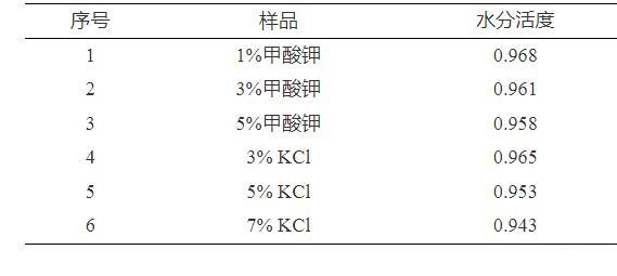 通過海陸過渡相頁巖巖心浸泡實驗與線性膨脹實驗,可以得出甲酸鉀、疏水抑制劑對于該區(qū)塊儲層頁巖具有良好的抑制效果。其作用原理為:①疏水抑制劑可以在黏土表面吸附后形成一層膠束膜,一定程度上阻止水分子進入黏土晶層,減少水分滲透,從而抑制黏土礦物的水化膨脹,同時,疏水抑制劑能夠改善頁巖的潤濕性和濾液的表面張力,弱化毛細管力,阻止濾液進入地層內(nèi)部;②甲酸鉀則是通過改變水的化學性質(zhì)和與黏土礦物的相互作用來影響?zhàn)ね恋乃再|(zhì),加入甲酸鉀后會降低水的活度(表2),產(chǎn)生一定的滲透壓差,有利于阻止壓力傳遞到泥頁巖中,從而抑制頁巖水化膨脹、分散;③KCl可以抑制黏土礦物的水化膨脹,部分是因為它能夠影響?zhàn)ね恋V物顆粒表面的電荷分布和相互作用。當黏土礦物水化時,表面的電荷特性會發(fā)生變化,導致顆粒之間的斥力增加,從而引起膨脹。KCl的存在可以中和一部分表面電荷,降低顆粒間的斥力,減緩水化膨脹的速率。