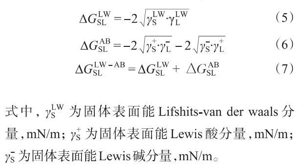 根據(jù)DLVO擴展理論,首先分別通過式(5)和式(6)計算LW相互作用自由能(和AB相互作用自由能()。然后,通過式(7)計算去離子水溶液中的液-固界面作用能()。