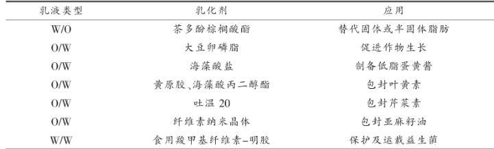 表1幾種單腔室乳液在食品中的應(yīng)用