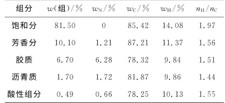 1.2.2原油組分元素分析用ElementarVario EL(Germany)元素分析儀器測定原油中各組分元素的質(zhì)量分?jǐn)?shù),結(jié)果見表2。