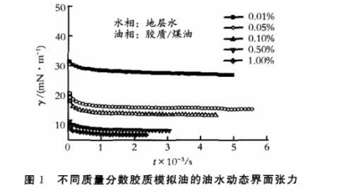 圖1不同質(zhì)量分?jǐn)?shù)膠質(zhì)模擬油的油水動態(tài)界面張力