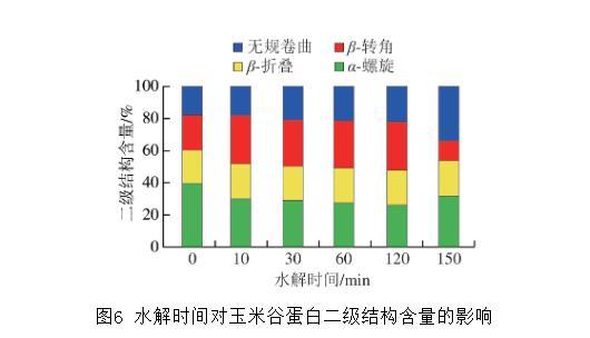 圖6水解時(shí)間對玉米谷蛋白二級(jí)結(jié)構(gòu)含量的影響