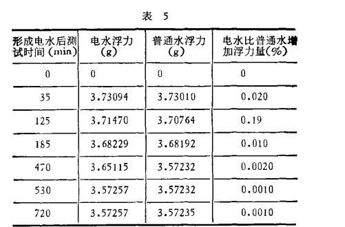 至于電水時間效應的機理問題,特別是浮力變化大的范圍和緩慢變化范圍和水分子及水中雜質(zhì)儲能的時間長短有何關系,還需要從實驗和理論上進一步研究。