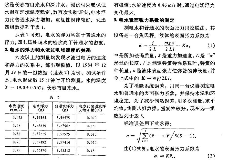 結(jié)果,電水比普通水表面張力系數(shù)增加的百分數(shù)為4%±1%。
