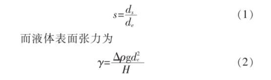 式(2)中為液體和空氣之間的密度差,g為重力加速度,而根據(jù)經(jīng)驗公式和推導證明,認為S和1/H是反應液滴形狀的參數(shù),可查表得到兩者的固定關系,根據(jù)此關系將S代入表面張力計算,可以得到液體表面張力。
