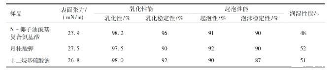 以大豆為原料合成的N-椰子油?;鶑秃习被岜砻婊钚詣┍砻鎻埩?、乳化起泡潤濕性能測定(二)