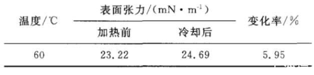 將助排劑AO-4放入烘箱,溫度設置為60℃,放置2 h后,冷卻至室溫,測試其表面張力,結(jié)果見表2。