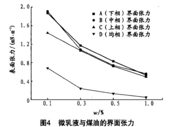 對上述微乳液進行了表/界面張力的測試,結(jié)果見圖3。