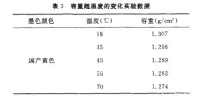 4)按以上步驟分別測(cè)量18~70℃的容重(見表3)。