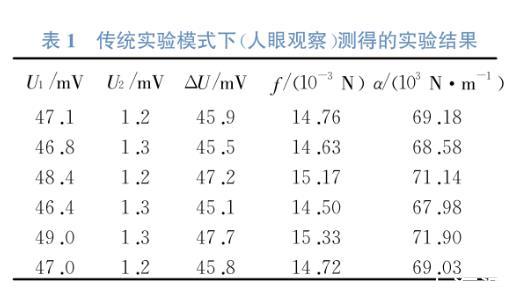 表1傳統(tǒng)實(shí)驗(yàn)?zāi)J较拢ㄈ搜塾^察)測得的實(shí)驗(yàn)結(jié)果