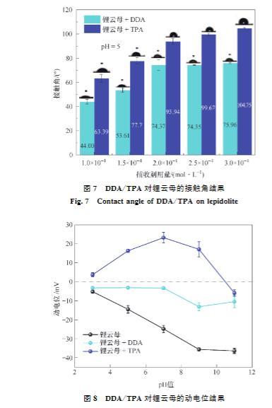 圖7 DDA/TPA對(duì)鋰云母的接觸角結(jié)果
