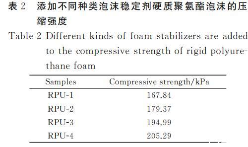 表2添加不同種類泡沫穩(wěn)定劑硬質聚氨酯泡沫的壓縮強度