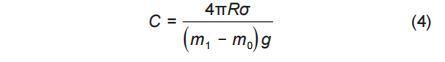 采用拉筒法測量納米熔鹽液體表面張力前,可通過測量已知液體的表面張力,通過式(4)對表面張力實(shí)驗(yàn)臺的儀器系數(shù)進(jìn)行標(biāo)定。