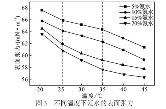 圖3 不同溫度下氨水的表面張力