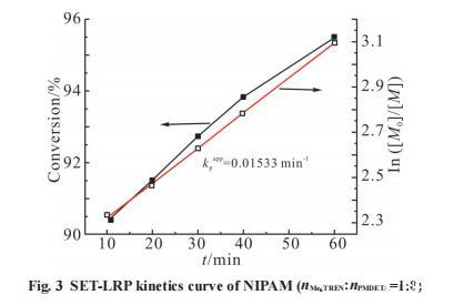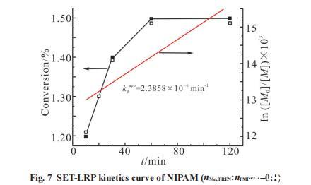 從Fig.7可以看出,這組與配體比例當(dāng)nMe TREN:nPMDETA 6 =1:4類似,轉(zhuǎn)化率極低,實(shí)驗(yàn)現(xiàn)象也相同,說明在Me。TREN占比低于PMDETA時(shí),混合配體的催化效率會(huì)明顯下降甚至不能催化聚合。