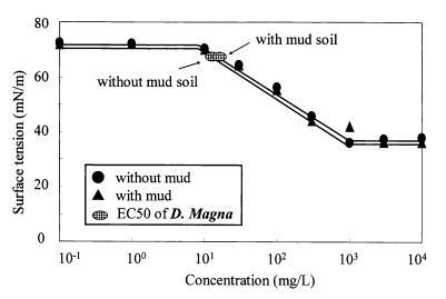 圖13泥質(zhì)土壤存在對大型水蚤AS表面張力曲線和有毒表面張力值的影響。