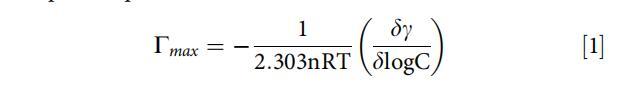 Γmax說明了表面活性劑分子在空氣-水界面上的累積,可以使用吉布吸附方程計(jì)算[73]