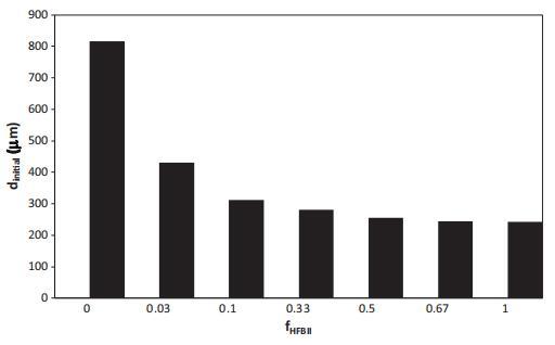 圖8給出了以與圖3相同的HFBII:WPI比率制備的兩種泡沫的初始氣泡尺寸。最重要的觀察結(jié)果是,少量HFBII(來自fHFBII 0.03)在很大程度上影響泡沫的初始氣泡尺寸。此外,似乎從WPI主導向HFBII主導的行為轉(zhuǎn)變發(fā)生在fHFBII~=0.2,對應于朗繆爾槽中吸附層中觀察到的轉(zhuǎn)變(圖6)。