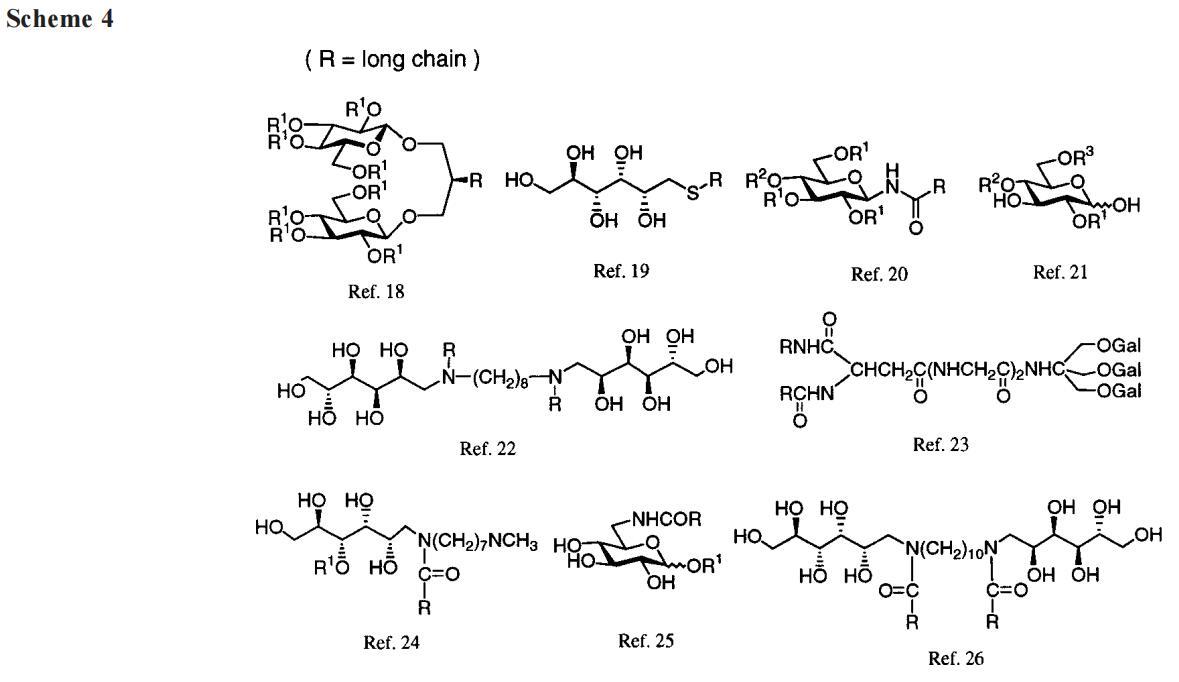 我們的第一個驚喜是發(fā)現(xiàn)A系列海藻糖雙子座不溶于水。例如,A-12、A-14和A-16(指鏈長的數(shù)字)在1毫升溫水中旋轉2毫克時會留下沉淀物。即使在70°C的溫度下,A-10也會在這種處理過程中形成渾濁的懸浮液。A-8在室溫下的可溶濃度僅為1-2 mM(根據(jù)動態(tài)光散射,在該濃度下,會形成膠束大小的聚集體)。天真地說,人們可能會認為a-8的溶解度大得多,因為該分子由六個羥基和兩個酰胺組成。盡管相關的6-氨基-6-脫氧己糖衍生物需要加熱才能溶解,25許多烷基化單糖(例如,辛基葡萄糖苷和甲基6-O-(N-庚基羰基)-R-D-吡喃葡萄糖苷或下面的“Hecameg”)是水溶性的。然而,A-8并沒有類似的天賦。這里的教訓是,用一句老生常談的話來說,我們的雙子座比其各個部分的總和要多(或少)。不管老生常談與否,雙子座的獨特屬性都取決于它。