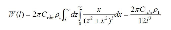 若取l為物質(zhì)本體內(nèi)分子間的距離d11,且兩半無限體為同一種物質(zhì)時,則上式的互作用勢變?yōu)椋ㄈ〗^對值