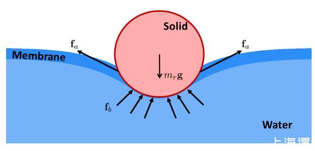 其中是流體表面的面積,稱為表面張力系數(shù)。當(dāng)流體與固體發(fā)生作用時,流體表面的分子同時會受到固體分子的作用,從而將表面張力作用在固體上。固體根據(jù)表面特性不同可以分為親水和疏水兩類,疏水材質(zhì)在水面上會受到向上的表面張力作用,對于一些細(xì)小的結(jié)構(gòu)來說這個力要比浮力更為明顯。比如說水黽是一種可以生活在水面上的昆蟲,它的腳非常細(xì)長,并且有很多絨毛來保持疏水特性,因而水黽可以依靠表面張力維持自身的重量,并通過腳來劃動水面來向前運(yùn)動甚至跳起。