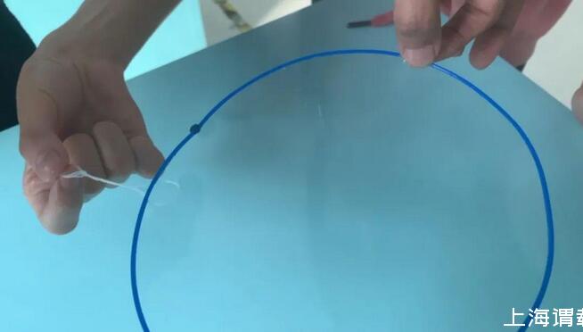 二、棉線打結(jié)成小圈,沾上泡泡水,放在泡泡薄膜上。