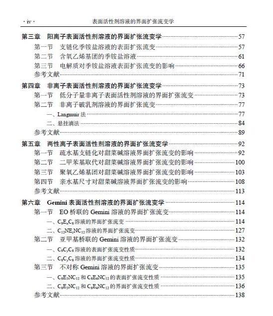 流體界面擴(kuò)張流變學(xué)還處于快速發(fā)展之中,因此本書主要介紹其方法和應(yīng)用實(shí)例,構(gòu)架復(fù)雜的新型研究手段與應(yīng)用之間的橋梁,讓具有基礎(chǔ)化學(xué)知識(shí)的讀者掌握界面擴(kuò)張流變研究手段。本書以表面活性劑溶液的界面擴(kuò)張流變學(xué)研究為核心,全面介紹界面擴(kuò)張流變學(xué)的基礎(chǔ)知識(shí),分類描述不同類型表面活性劑在空氣-水和油-水界面的擴(kuò)張流變性質(zhì);重點(diǎn)闡釋通過界面擴(kuò)張流變學(xué)研究手段獲得流體界面吸附分子相互作用及微觀行為的方式。在本書寫作上,避免煩瑣的數(shù)學(xué)推導(dǎo)和理論描述,以界面擴(kuò)張流變方法的物理化學(xué)意義和儀器應(yīng)用為重點(diǎn),強(qiáng)調(diào)可操作性。