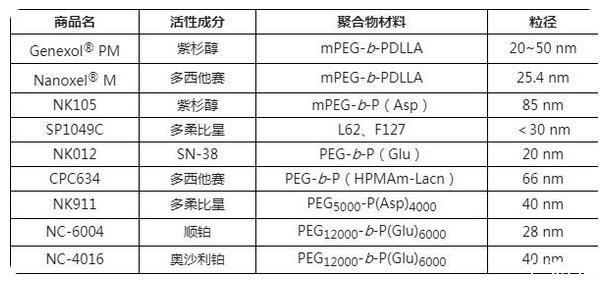 納米級的聚合物膠束具有一定的長循環(huán)性質(zhì),并可通過增強滲透滯留效應(Enhanced Permeability and Retention,EPR)被動靶向于腫瘤部位,也可對表面進行修飾達到主動靶向的目的。目前已有幾款產(chǎn)品在部分地區(qū)上市,例如韓國Samyang公司開發(fā)的紫杉醇聚合物膠束Genexol PM于2007年在韓國獲批用于治療非小細胞肺癌、轉(zhuǎn)移性乳腺癌和卵巢癌,之后又在印度、塞爾維亞、菲律賓和越南上市,目前正在美國進行相關臨床研究;另一款紫杉醇聚合物膠束Paclical是由瑞典Oasmia公司開發(fā),2015年10月在俄羅斯上市,聯(lián)合卡鉑用于首次復發(fā)的鉑敏感性上皮性卵巢癌、原發(fā)性腹膜癌、輸卵管癌成人患者的治療。