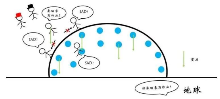 這樣的理解雖然直觀,但是缺少了幾分更加深入的視角,也沒辦法真正理解什么是表面張力。那怎么辦呢?我們來看看與力對應(yīng)的能量(特指勢能)。以重力為例,大家可能聽說過重力勢能,即某一地球附近的物體由于處于一定的高度而蘊(yùn)含的能量。更加直觀地講,如果以地面為勢能零點,則物體在重力的作用下下落到地面所能釋放的能量就是重力勢能。