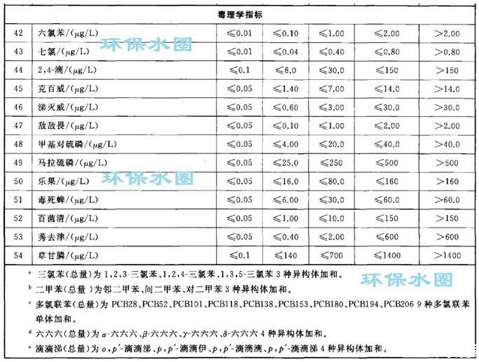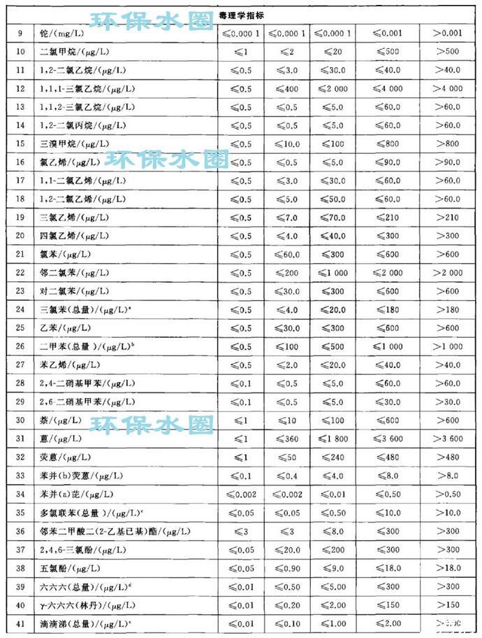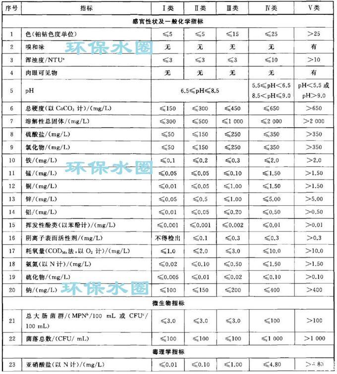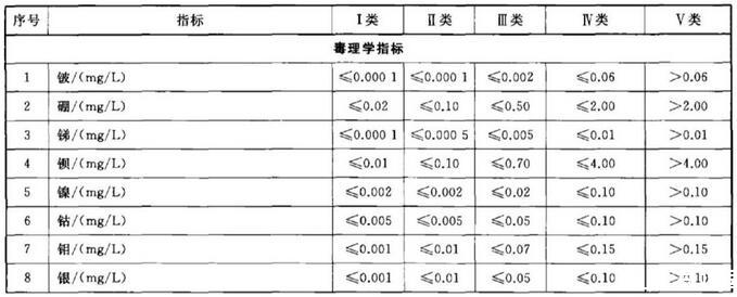 依據(jù)我國地下水質量狀況和人體健康風險,參照生活飲用水、工業(yè)、農(nóng)業(yè)等用水質量要求,依據(jù)各組分含量高低(pH除外),分為五類。