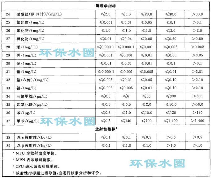 反映地下水質量基本狀況的指標,包括感官性狀及一般化學指標、微生物指標、常見毒理學指標和放射性指標。