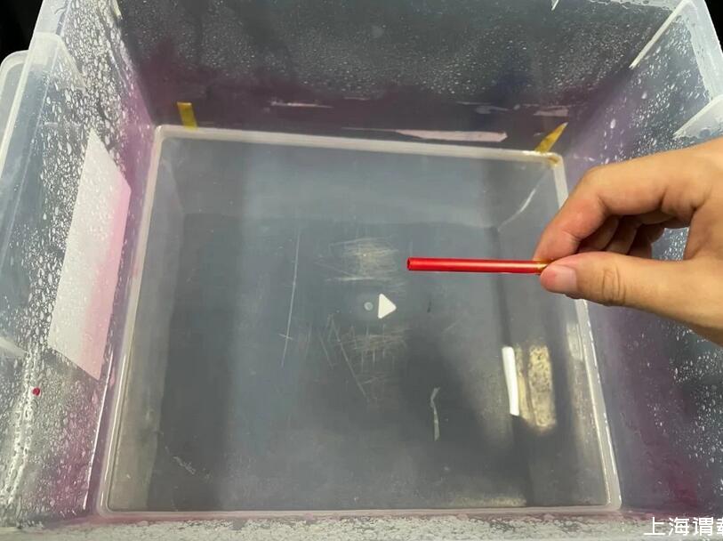 將筆芯里面的油墨滴到水里面,觀察油墨的變化。