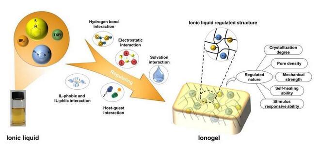圖2.離子液體調(diào)控離子凝膠的結(jié)構(gòu)和性質(zhì)的示意圖