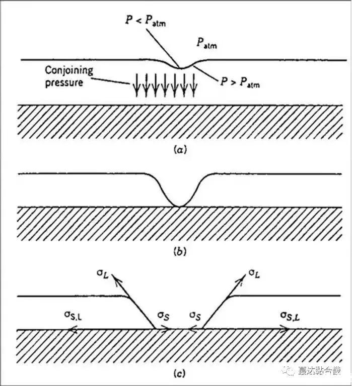 處于液體體相內(nèi)的任一分子受到其周圍四面八方分子的作用是相等的,可以抵消,故在液體內(nèi)部分子的移動(dòng)無需做功。處于液體表面上的分子受到液體內(nèi)部分子的作用力遠(yuǎn)大于另一側(cè)氣體(或蒸氣)分子的作用力,因而液體表面分子有自動(dòng)向液體內(nèi)部遷移的趨勢,這種趨勢的表現(xiàn)之一是液體表面自動(dòng)縮小,表現(xiàn)之二為欲擴(kuò)大表面需外界做功。表面張力的力學(xué)定義是作用于液體表面上任何部分單位長度直線上的收縮力,力的方向是與該直線垂直并與液面相切,單位為mN·m-1。