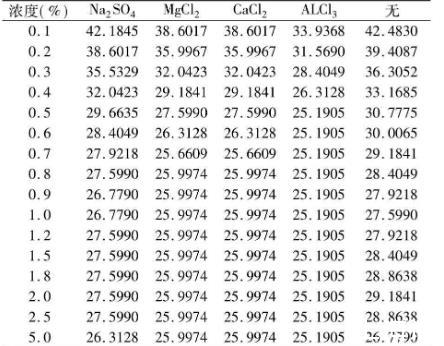 表4不同價(jià)態(tài)離子添加劑對黃花敗醬皂甙水溶液的表面張力的影響σ×10-3(N·m-1)