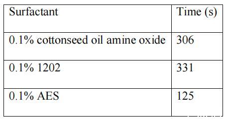 兩種不同的液體短語不能混合在一起的現(xiàn)象是 由于表面活性劑的作用而能夠混合的稱為乳化。 這 乳化機理可以解釋:表面活性劑的兩親特性 使其易于在油水界面吸附和富集,從而減少界面 張力并改變界面狀態(tài),所以"油"和"水"這兩個詞可以 不能混在一起,可以混在一起。 蓖麻油酰胺氧化胺與棉籽油酰胺的水分離時間 氧化胺列于表3中。