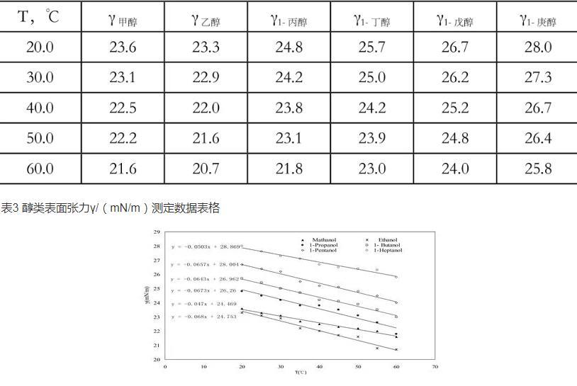 表3醇類表面張力γ/(mN/m)測(cè)定數(shù)據(jù)表格