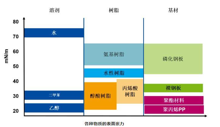 為什么現(xiàn)在的涂料工程師嘴里一直講降低表面張力了?那是因?yàn)椋S著水性漆的不斷發(fā)展,很多企業(yè)都在油改水,由油性漆改換水性漆,而原來的油性漆中各種溶劑的表面張力都集中在20-40之間,唯獨(dú)水的表面張力系數(shù)72.8mN/m(20℃)。下面一起了解下表面張力在涂料中的應(yīng)用。